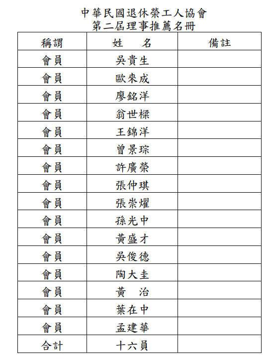 中華民國退休榮工人協會-最新消息-最新消息- 中華民國退休榮工人協會
