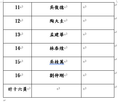 主任委員吳貴生。委員曾元一、沈景鵬、歐來成、王錦洋、張崇燿、葉在中、朱穗生、冷耀東共九員。