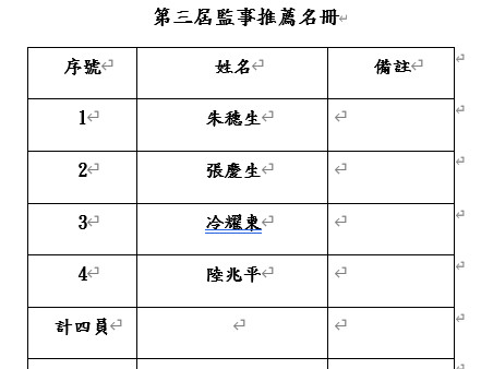 一、 經各理監事一致推選第三屆司選委員會委員名單為: