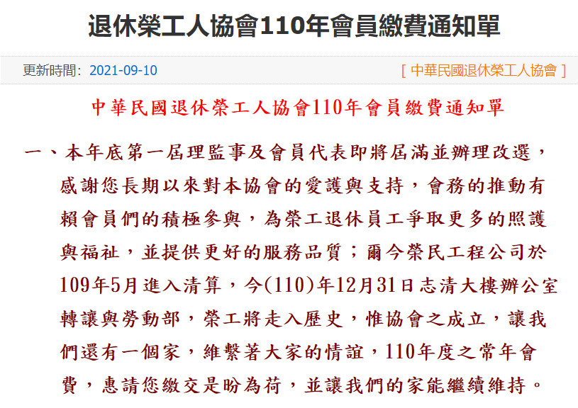 網站名稱:中華民國退休榮工人協會 網址:https://rsea.esino.org